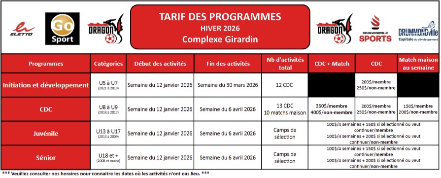 Il est possible d'acheter un chandail rouge du club en nous contactant par courriel : cs.dragons@soccerdrummond.ca
